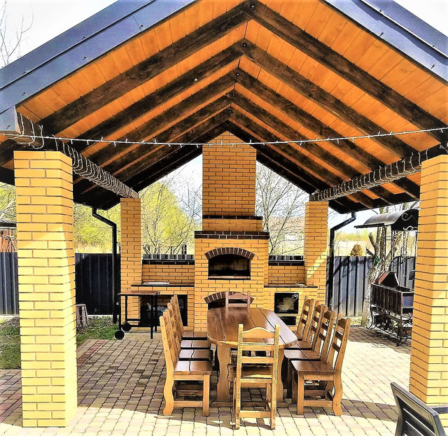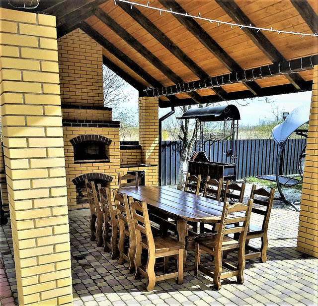 🍀 Комплектуємо дерев'яні будинки, лазні, ресторани, кафе заміські будинки, дачі, майданчики для мангалів дерев'яними меблями з масиву дерева нашого виробництва.